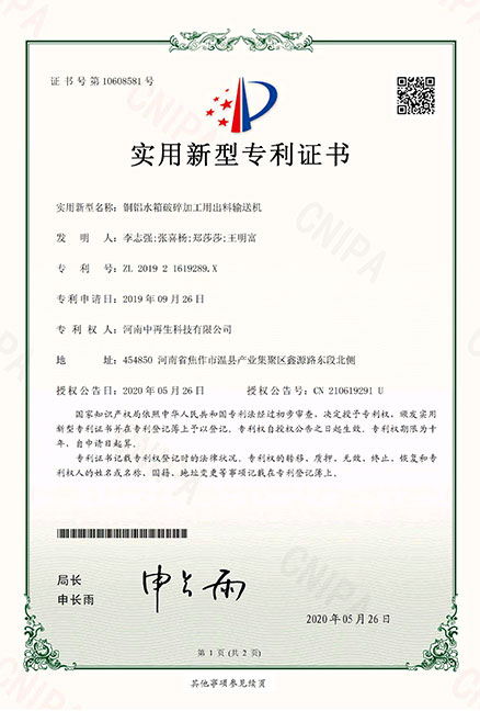 ZL2019216192866銅鋁水箱破碎加工用振動給料機